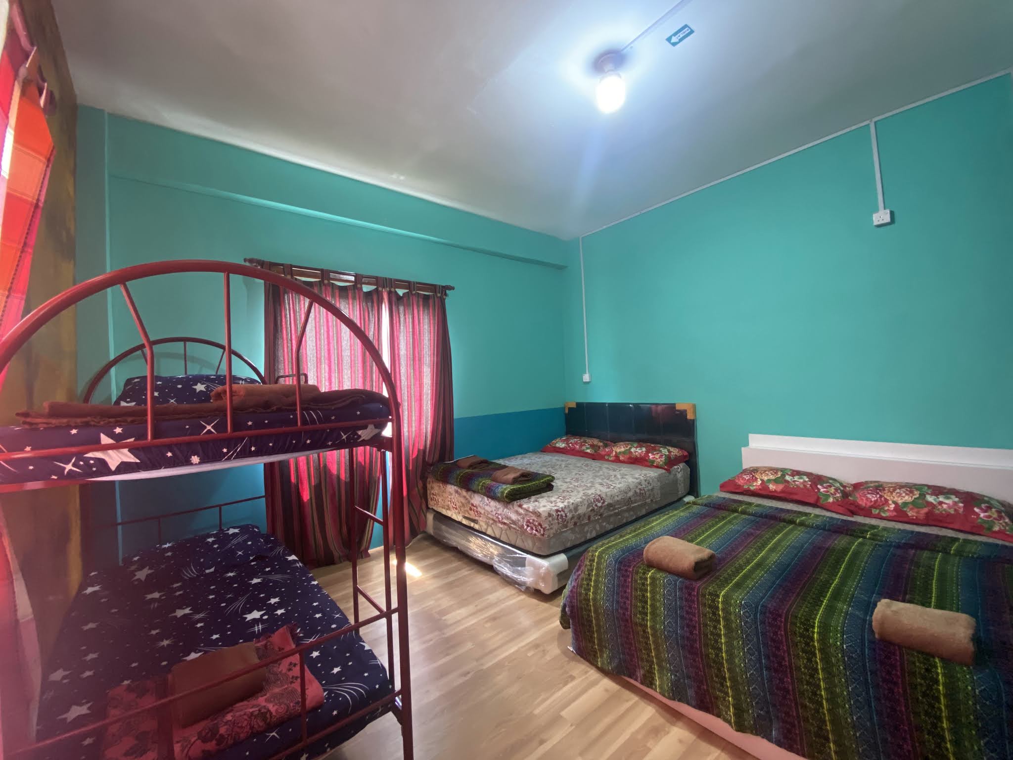 Remark : Setiap bilik dipisahkan dengan Ruang legar, so memang tidak ganggu privacy guest lain. Rumah ni sebiji, tapi dalam dia ada 13 bilik untuk stay. Oh, extra bed 30 MYR saja, ia satu set dengan tilam bantal dan comforter.
